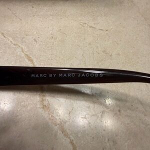Stylish Marc Jacobs sunglasses with a black and brown frame. Perfect for a modern look.