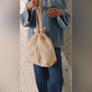 Chic and versatile, this cream drawstring bag features delicate floral embroidery. Perfect for everyday use.