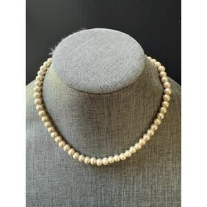 Vintage Chunky Faux Pearl Bead Choker Collar Necklace Beige 19” Cocktail Wedding