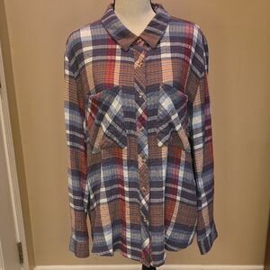 The Favorite Button Up Plaid is back in a brand new navy plaid that’s perfect for cozy fall weather! Itch-free and ultra flattering, these drapey button up tops are a G&L staple for styling solo or layered. Why you’ll love them: * Years in the works, our signature fabric looks like a classic plaid, but fits and moves like your favorite stretchy, drapey top! * Relaxed casual fit with plenty of stretch that’s pre-washed for instant softness * Features our custom designed plaid pattern of navy, tan, light blue and red * Easy to style buttoned up or layered unbuttoned over tees and tanks for a year-round favorite closet staple!