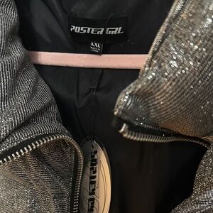 NWT POSTER GIRL Silver Glittery Puffer Jacket
