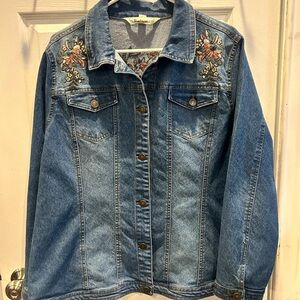 Tantrums Blue Denim Jacket with Floral Accents XL