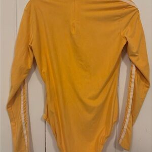 Bright, vibrant blokecore sporty model off-duty Adidas yellow velour bodysuit with mockneck and long sleeves. Size small. Great condition, only worn once!