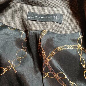 ZARA WOMAN Gray/Brown Houndstooth Double-Breast Blazer