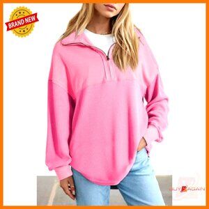 Brand new with tags, this cozy waffle knit half-zip pullover offers a relaxed, oversized fit perfect for casual comfort and effortless style. The soft, thick fabric is ideal for layering and keeps you warm during cooler seasons.