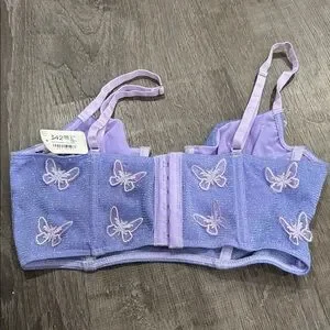 Sparkly Purple Bra Top w/ Pink Butterflies Rave EDM