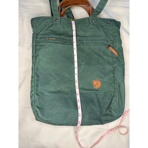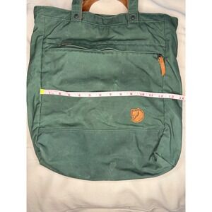 Keywords: Fjallraven, tote backpack, convertible bag, canvas bag, green bag, leather accents, travel bag, everyday carry, hiking bag, outdoor gear, work bag, school bag, functional, durable