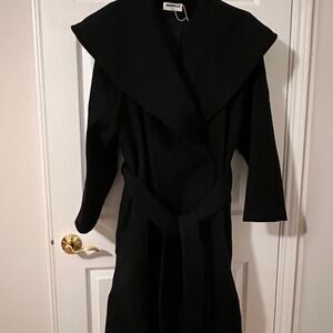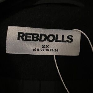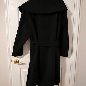 Rebdolls Wide Collar Belted Mid-Length Black Coat Plus Size 2X Long Sleeve