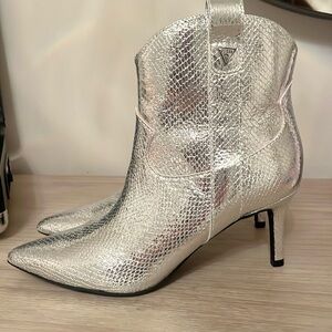 GUESS NWOT Silver Metallic Snake Print Western Boots