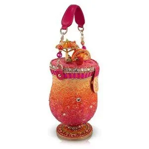 Mary Frances Paradise Punch Cocktail Top Handle Bag Handbag Gold Pink Purse NEW