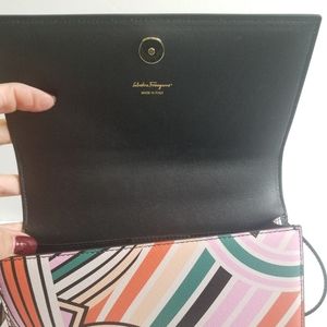 FERRAGAMO Striped Leather Top Handle Crossbody Bag Multi