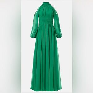 Product Details An exclusive design from the Zac Posen x Wicked collection. This elegant green gown by Zac Posen features a high neckline and dramatic cut-out sleeves, offering a sophisticated yet bold statement. Perfect for formal events, complement the look with statement earrings and sleek heels. Materials and Measurements Green (100% Polyester). Gown. Long sleeves. Cold shoulder. Back zipper closure. 58" from shoulder to hemline. Imported. Coor Aurora Please see attached pictures for design details from the front and back of the top corset area PRICE ADJUSTED BECAUSE OF IT