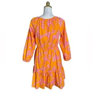 J. Crew Women Orange Pink Floral Scoop-Neck Tiered 100% Cotton Mini Dress Size 6