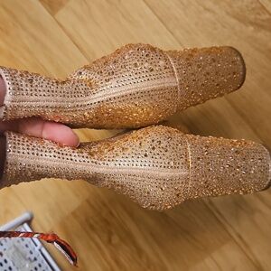 Top Moda Women's High Heel Rhinestone Bling Booties Rose Gold Ankle Boots