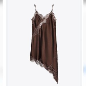 ZARA ASYMMETRIC LACE DRESS Brown Chocolate