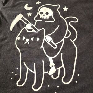 Black Matter From Reaper Riding Cat Black T-shirt With Graphics Size XL, small pink hole in back at collar possibly where price tag was other than that shirt is like new