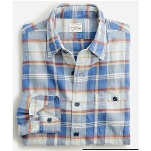 J Crew Cotton-Hemp Blend Twill Shirt Size Medium BM173 Blue Plaid NEW