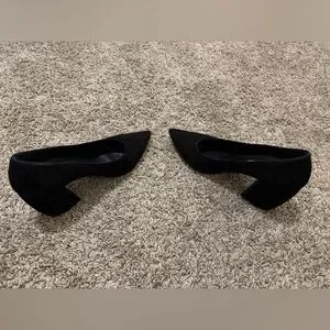 Chic Prada heels in black suede. Sleek and sophisticated design. Ideal for elevating any outfit. Sold as is.