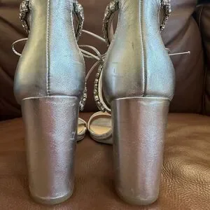 Jewel Badgley Mischka Women's Thamar Crystal Strappy Block Heel. Perfect for the holidays or wedding or prom. Size 8. 3 1/2” heel height. Great condition just a bit of scuffing on the heels. (Probably from the crystals rubbing). No nicks. No missing jewels. See all images.