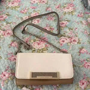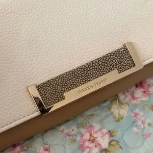 *Ivanka Trump* Classic Tan & Beige Cream Crossbody Handbag Purse EUC Gold Chain