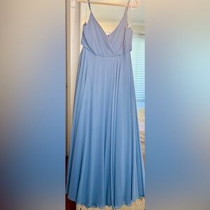 Lulu's Blue Maxi Gown Spaghetti Strap V-Neck