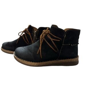 BORN Women's Calyn Boot Ankle Black Distressed Leather, Cork Midsoles, Booties 8