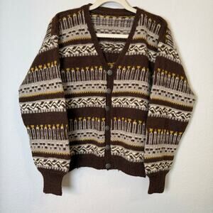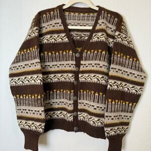 vintage, wool, silver tone buttons, nordic, winter cardigan, fall sweater