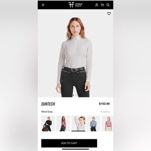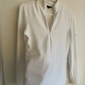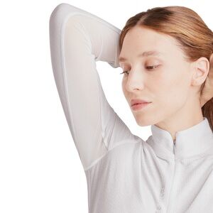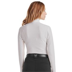 Technical equestrian top designed for riding and active wear. Lightweight, breathable, and stretchy fabric with UV protection. Features a sleek half-zip front and mesh panels for airflow.