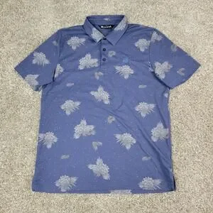Travis Mathew Mens Large Gray AOP Floral Performance Stretch Polo Short Sleeve