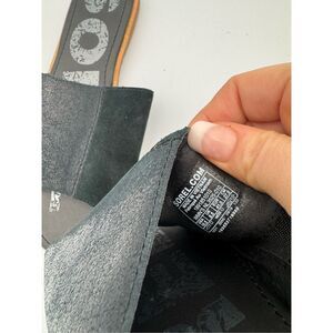 Sorel Womens Black Metallic Suede Ella Block Slide Flat Sandals Size 10.5