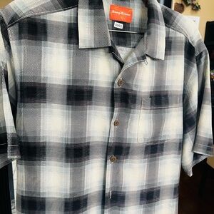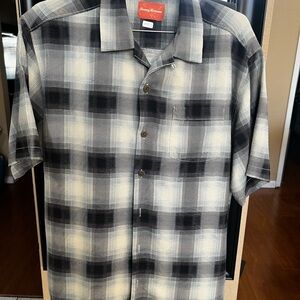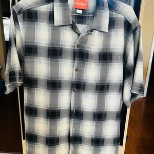 Tommy Bahama Men's Black and Cream Plaid Shirt