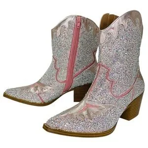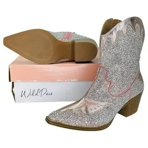 Wild Pair Lourdez Rhinestone Western Style Womens Ankle Boots Size 6M