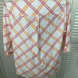 Chico’s size 3 pink orange checked with 3/4 length sleeves button down stretch