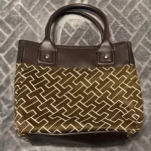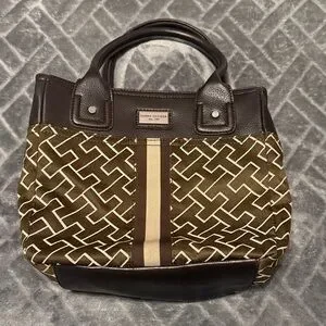 Tommy Hilfiger Brown and White Patterned Tote