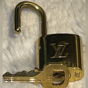 Up for grabs is a preowned and pre-loved Louis Vuitton padlock and key, #301.