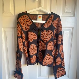 NWT Farm Rio Black Leopard Hearts Front Ties Knit Cardigan