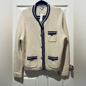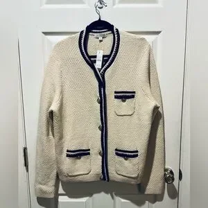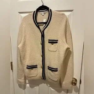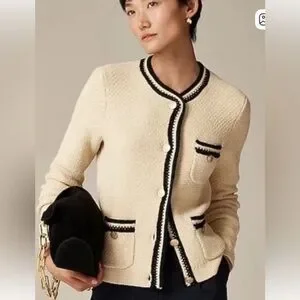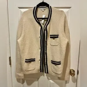 J.Crew NWT Cream And Black Lady Jacket Cardigan Woman Size X-Large Old Money