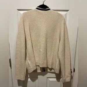 J. Crew Lovely Lady Jacket / Cardigan Sweater in Parchment With Striking Black Contrast Womans Size X-Large (Measurements Below)