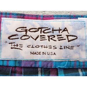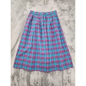 Vintage 80s Gotcha Covered Plaid Cotton Pleated Midi Skirt Size 14 Blue Preppy