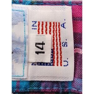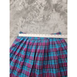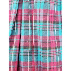 Vintage 80s Gotcha Covered Plaid Cotton Pleated Midi Skirt Size 14 Blue Pink Black White Preppy Back Button Zip Entry Cottagecore Academia
