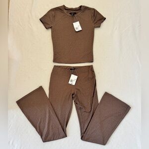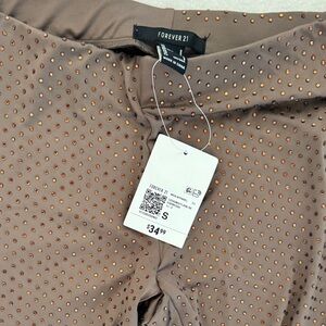 NWT Forever 21 set suit with rhinestones Brown Short Sleeve Top Pants S brown