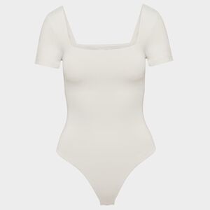 Second-skin squareneck shortsleeve bodysuitA cult classic for a reason. This is a squareneck shortsleeve bodysuit with a thong-cut bottom and double-layer fabric for a supportive fit. It’s made with Aritzia’s Contour — luxe, ultra-flattering fabric coveted for its smoothing effect and second-skin feel. Nothing more essential. Hidden Hold Loops keep your bra straps in place and out of sight. Features