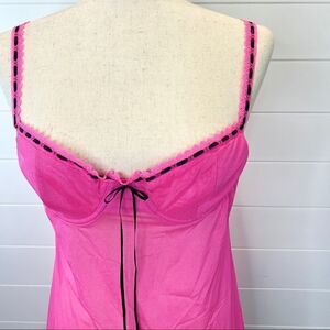 Victoria’s Secret Hot Pink Sheer Chemise 36B Black Ribbon Trim