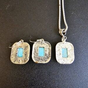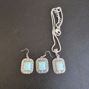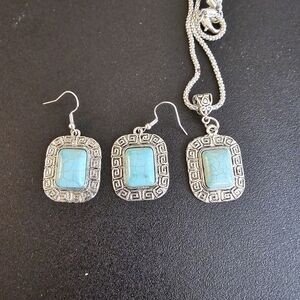 Handmade Antique Silver Tone Square Faux Tourquise Necklace and Earrings Set. Like new, never worn. 18" chain with lobster clasp. Nice gift for any age or occasion. Please see the pictures.