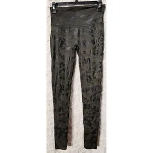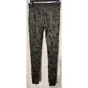 Spanx Faux Leather Camo Leggings Size M Black Olive Full Length Style 20185R