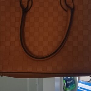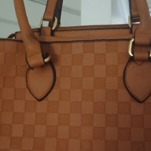 This stylish brown handbag features a chic checkered design, perfect for any occasion. Its elegant look is complemented by durable handles and a spacious interior, making it both fashionable and functional.
