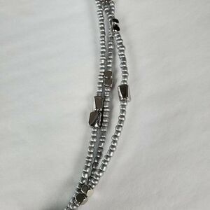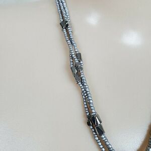 Triple Strand Gray Glass Seed Beads & Silver Tone Metal Beads