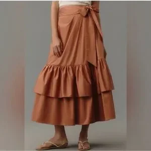 Anthropologie Hutch Wrap Tiered Pleated Tie Wrap Midi Skirt | 6
