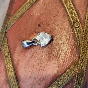 Good Pre-Loved Condition Dainty Crystal Heart Unmarked Silver Tone Neckle Pendant (Pendant only)