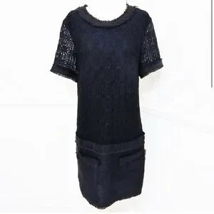 Rachel Zoe Navy Blue Lace Tweed Textured Shift Dress